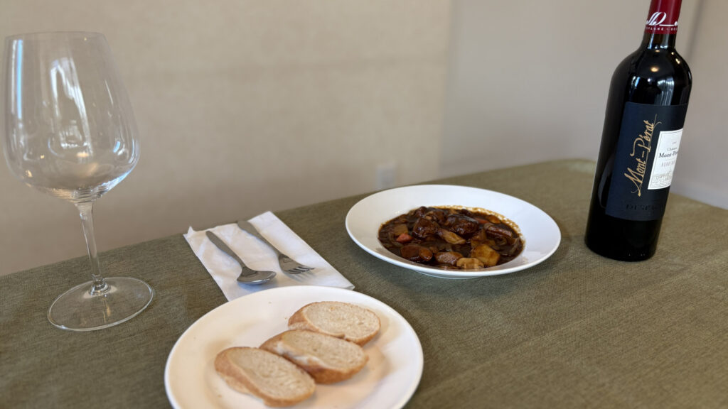 レトルトのビーフシチューに根菜とマッシュルームを追加してバージョンアップします。